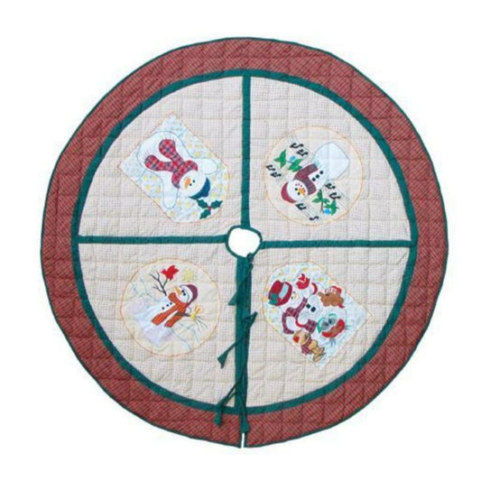 Jolly Snowmen Tree Skirt - Large 54" Diameter - Buy Now and Receive a FREE Matching Stocking! Crafted from 100% Cotton for a Holiday Setting