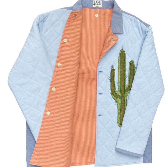 Colorful Cowboy Icon Appliqué Quilted Shacket with Cactus & Boot