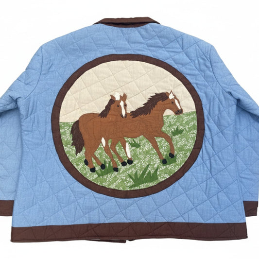 Western Horse Friends Patch Magic Jacket – Handmade Quilted Cotton Jacket with Countryside Horse Artwork