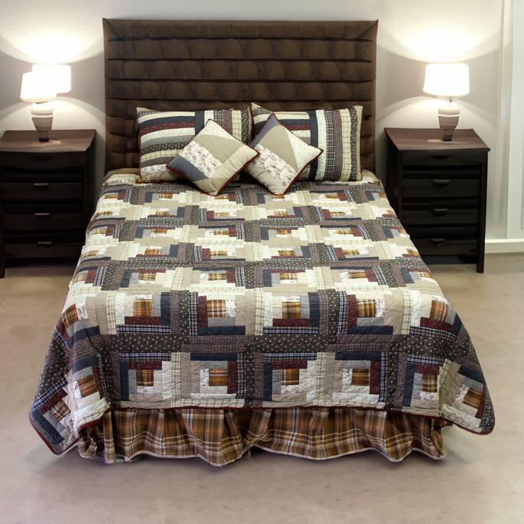 Express Log Cabin Quilt, Hand cut and Patchwork cotton fabric blocks.