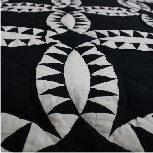 Black Wedding Ring Quilt, Hand cut and Patchwork cotton fabric blocks.