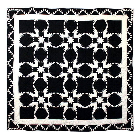Black Feathered Star Quilt, Hand cut and Patchwork cotton fabric blocks.
