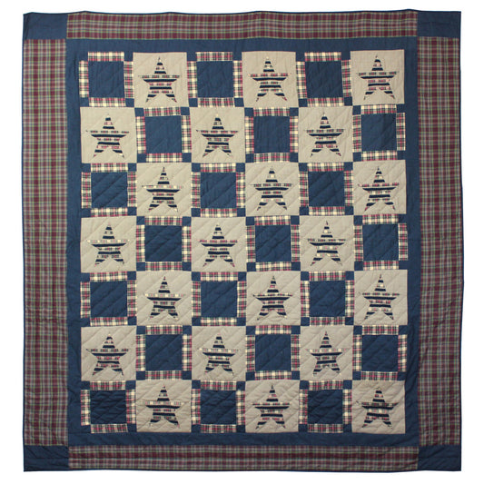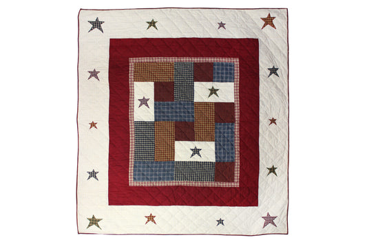 Countryside Star Quilt - Handmade, 100% Cotton Reversible Quilt with Rustic Patchwork & Appliqué Stars