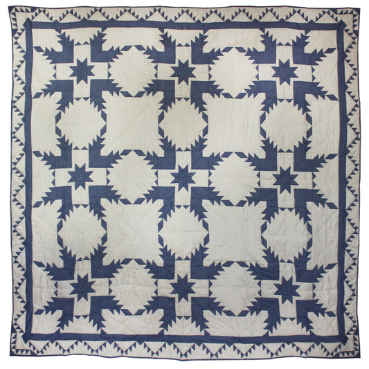 Blue Maze Quilt, Hand cut and Patchwork cotton fabric blocks.