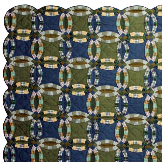 Chambray Ring Throw Quilt – 50"x60" Handmade Double Ring Wedding Pattern Quilt – Perfect for Cozying Up