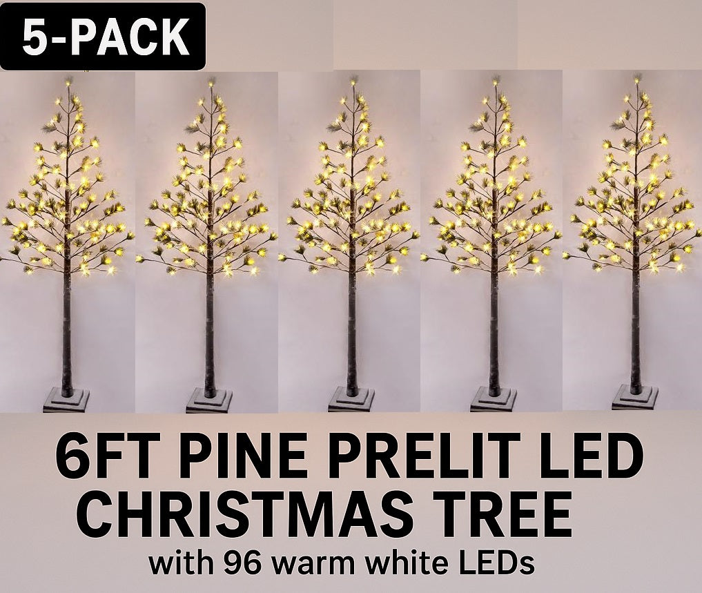 5-Pack Value Set: 6FT Pine Prelit LED Christmas Trees – Perfect for Events & Home Décor - LIMITED TIME DEAL – BUY MORE & SAVE BIG!