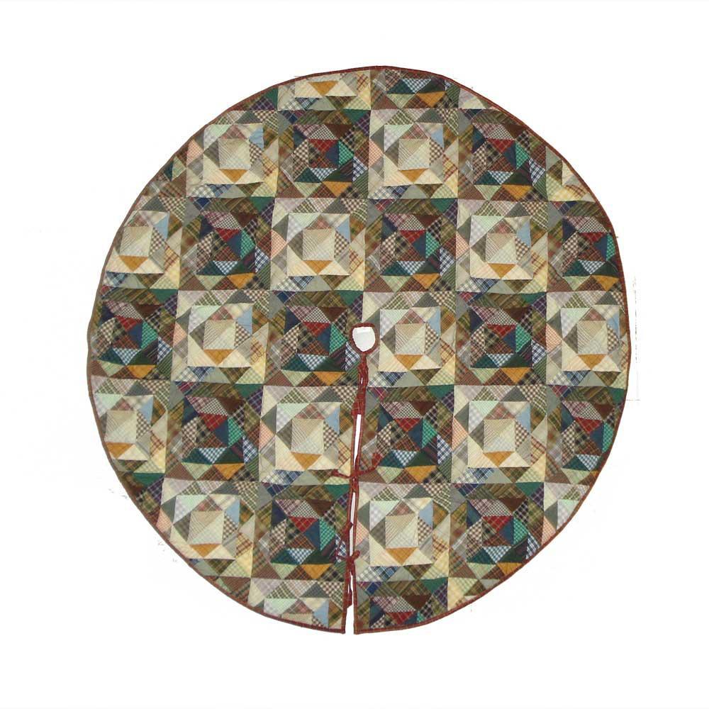 The captivating design features a vibrant red border that beautifully frames the tree base. Multi-colored rayed squares adorn the skirt, creating a visually striking display. The variegated prismatic broken dishes pattern adds a touch of elegance, breathing new life into your holiday decorations with a burst of vibrant and varied colors.