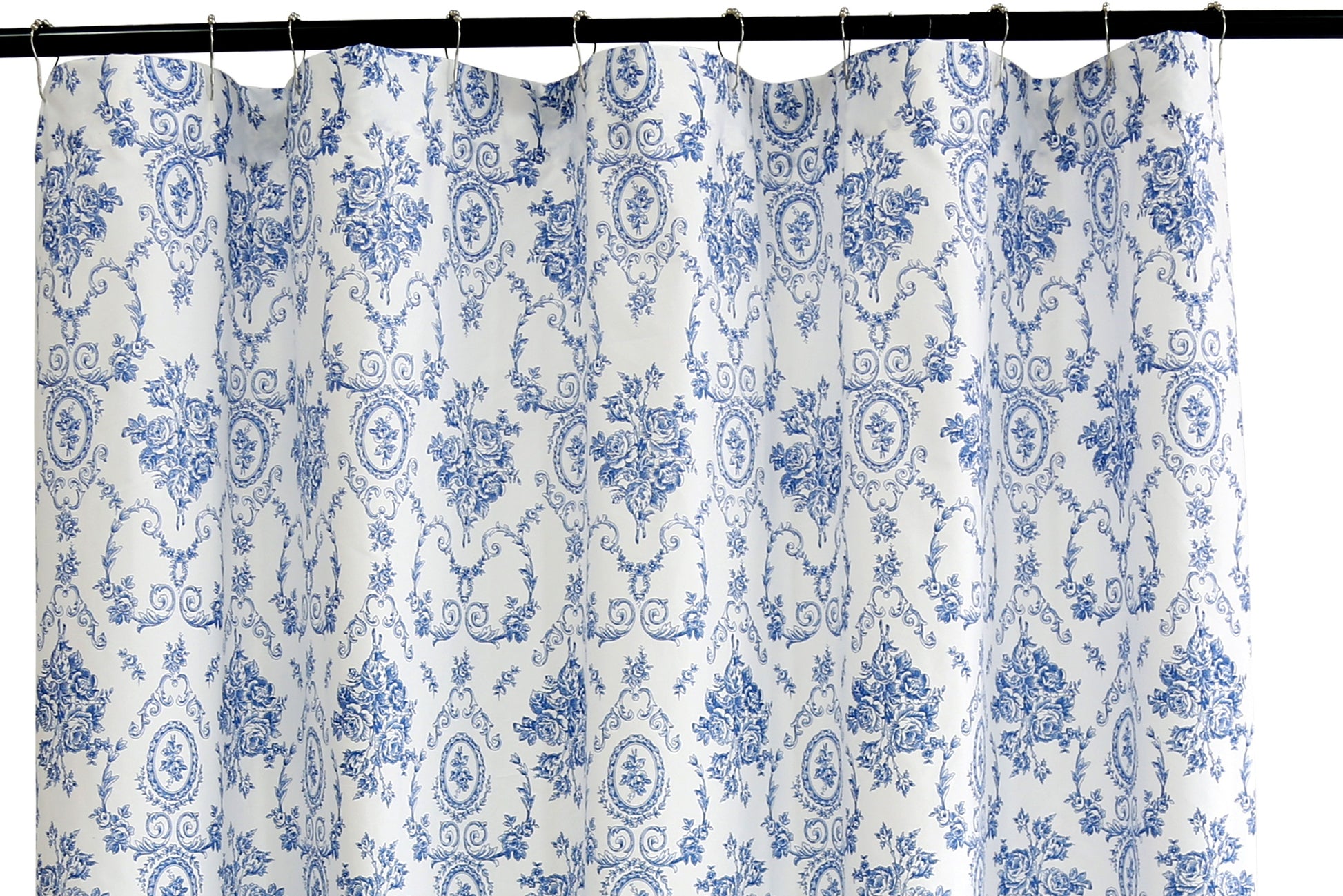 Elevate your bathroom decor with the serene beauty of our Blue Wisteria Lattice Shower Curtain. Measuring 72 inches in both width and length, this curtain is a subtle yet captivating addition to your bathing space. The delicate blue printed flowers and medallion centers are gracefully arranged on a white backdrop, creating the illusion of wisterias climbing an imaginary trellis.