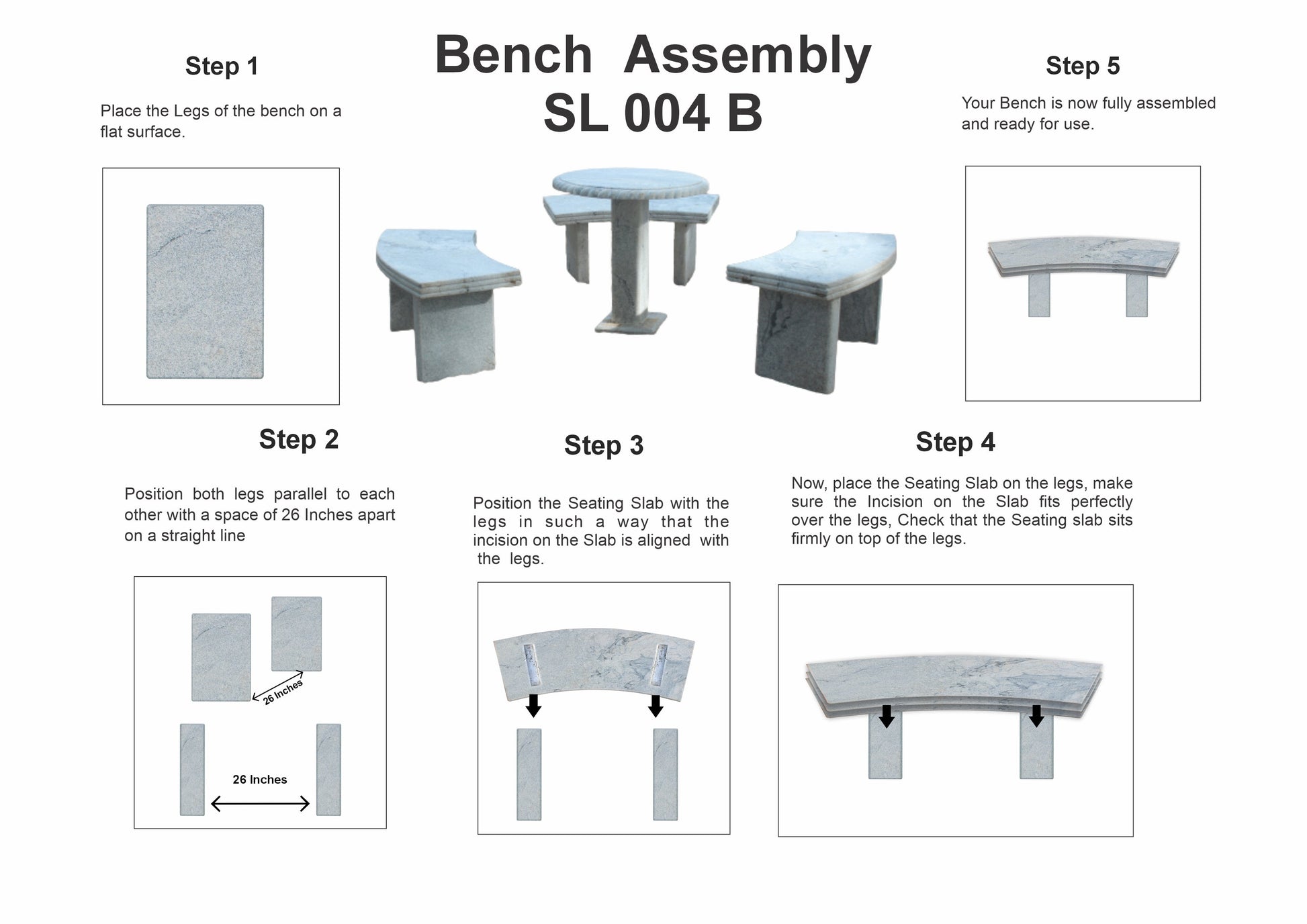 Step 3 - Position the Seating Slab with the legs in such a way that the incision on the Slab is aligned with the legs.