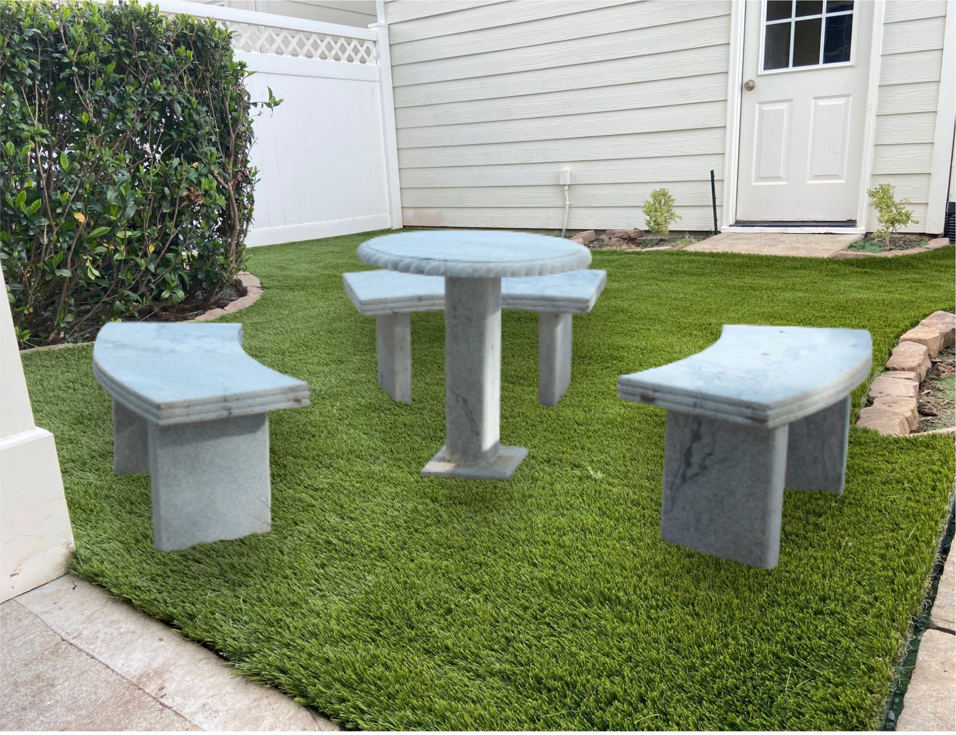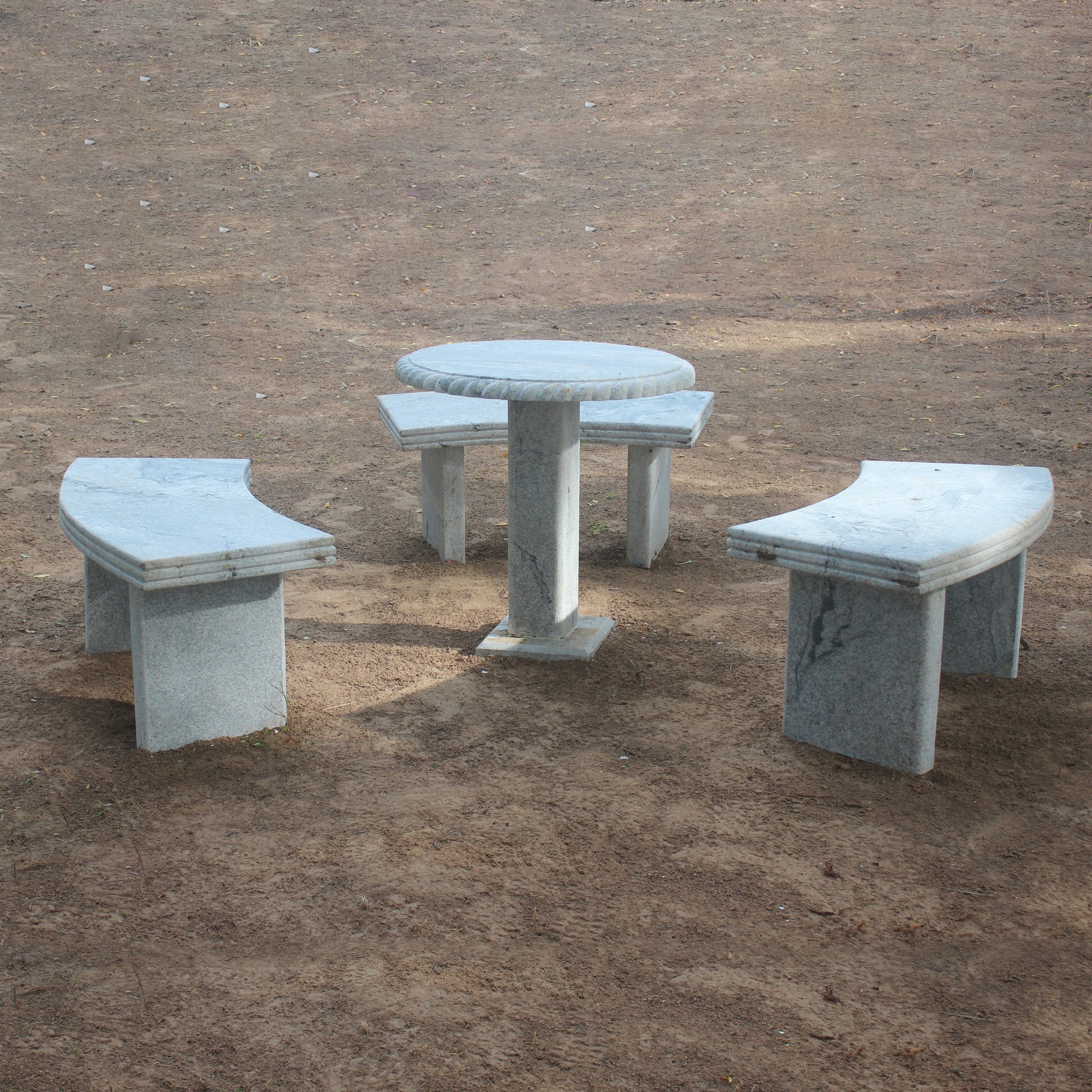 - Set Composition: 1 Circular Teapoy and 3 Curved Granite Stone Park Benches