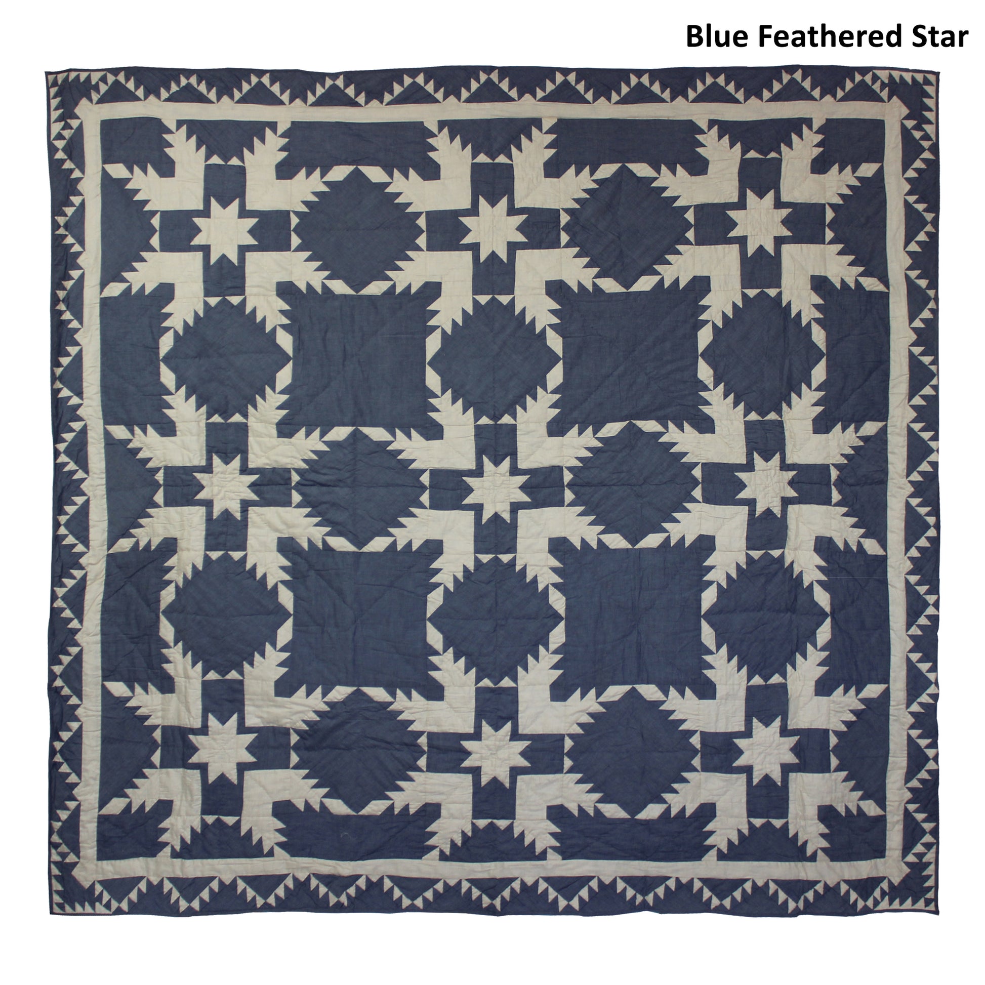 Blue Feathered Star/Feathered Star Quilt, Hand cut and Patchwork cotton fabric blocks.
