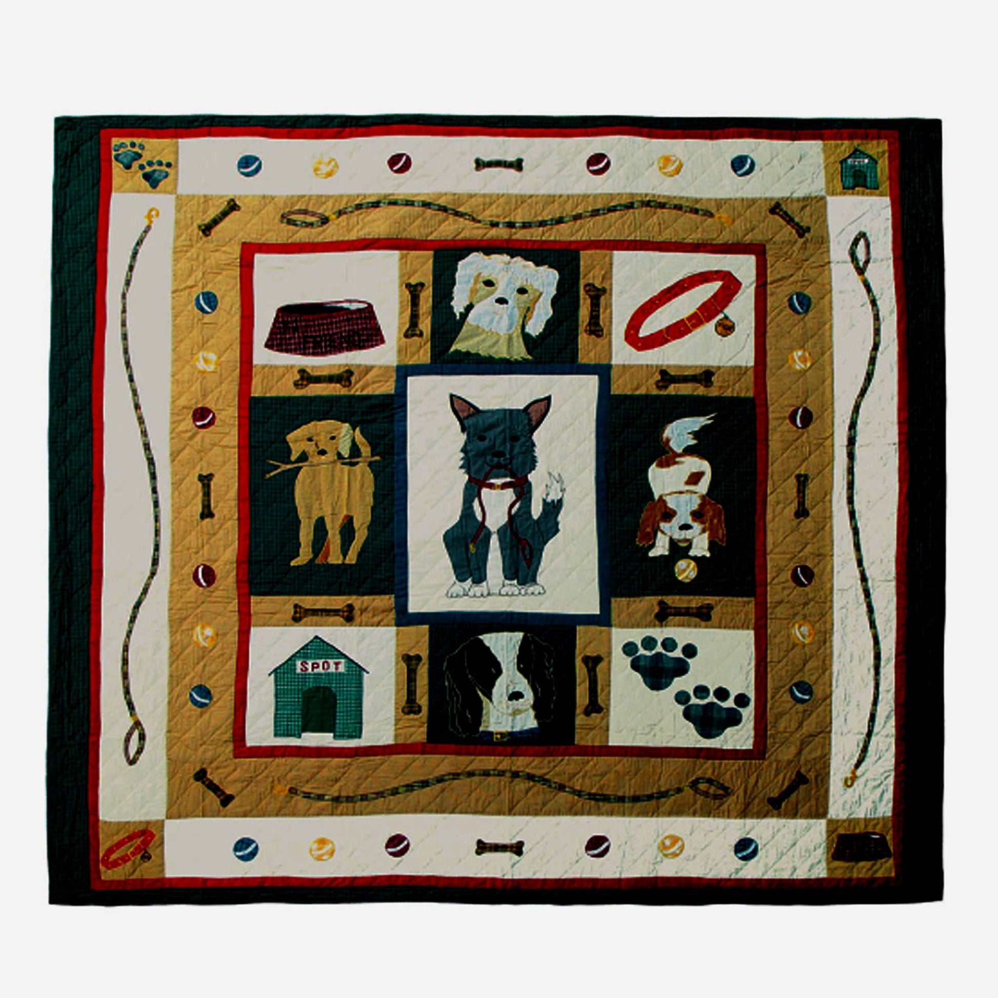 Cheeky Pet/ Fido/ Dog Twin (65"Wx85"L) Cotton Quilt, Hand cut and Appliqued cotton fabric motifs