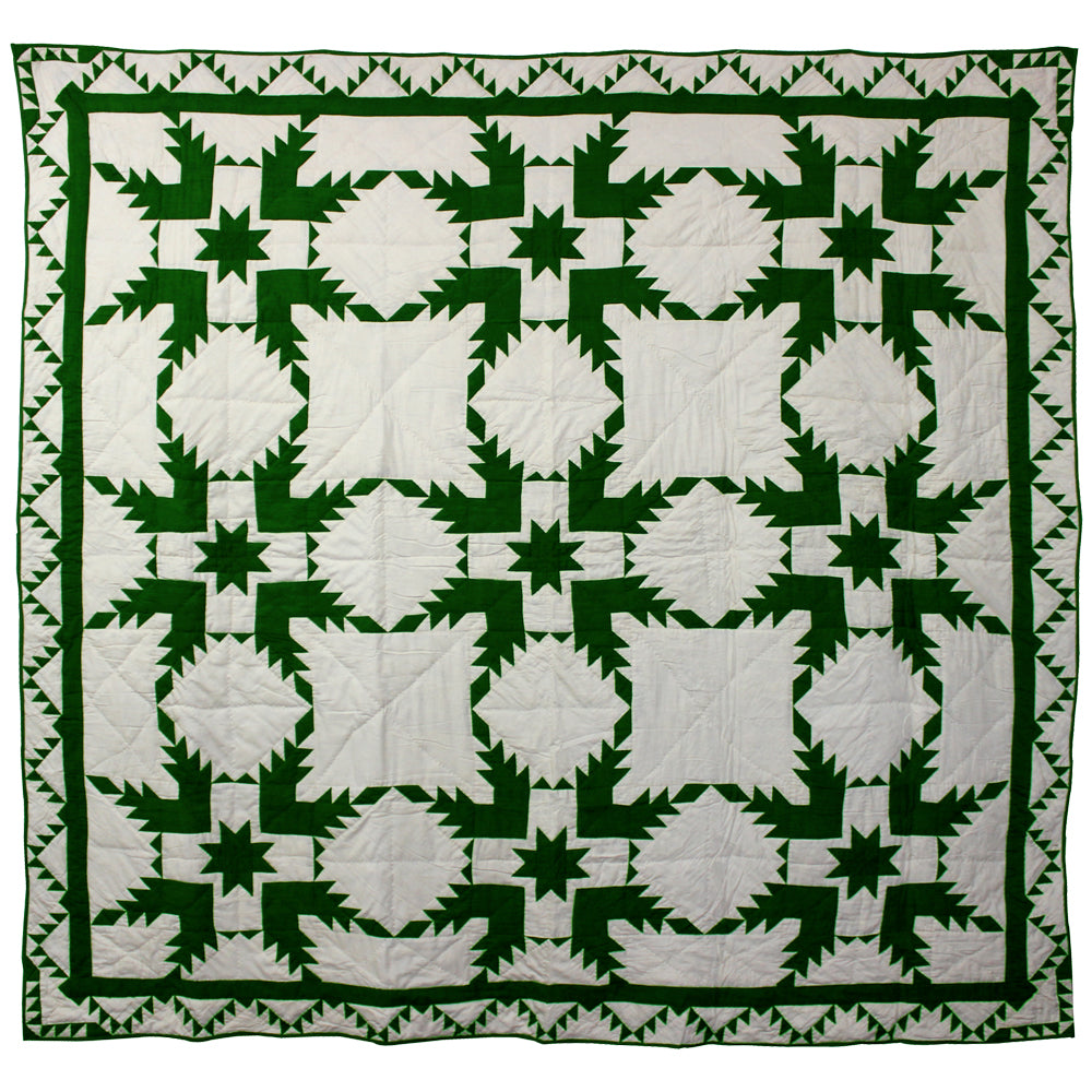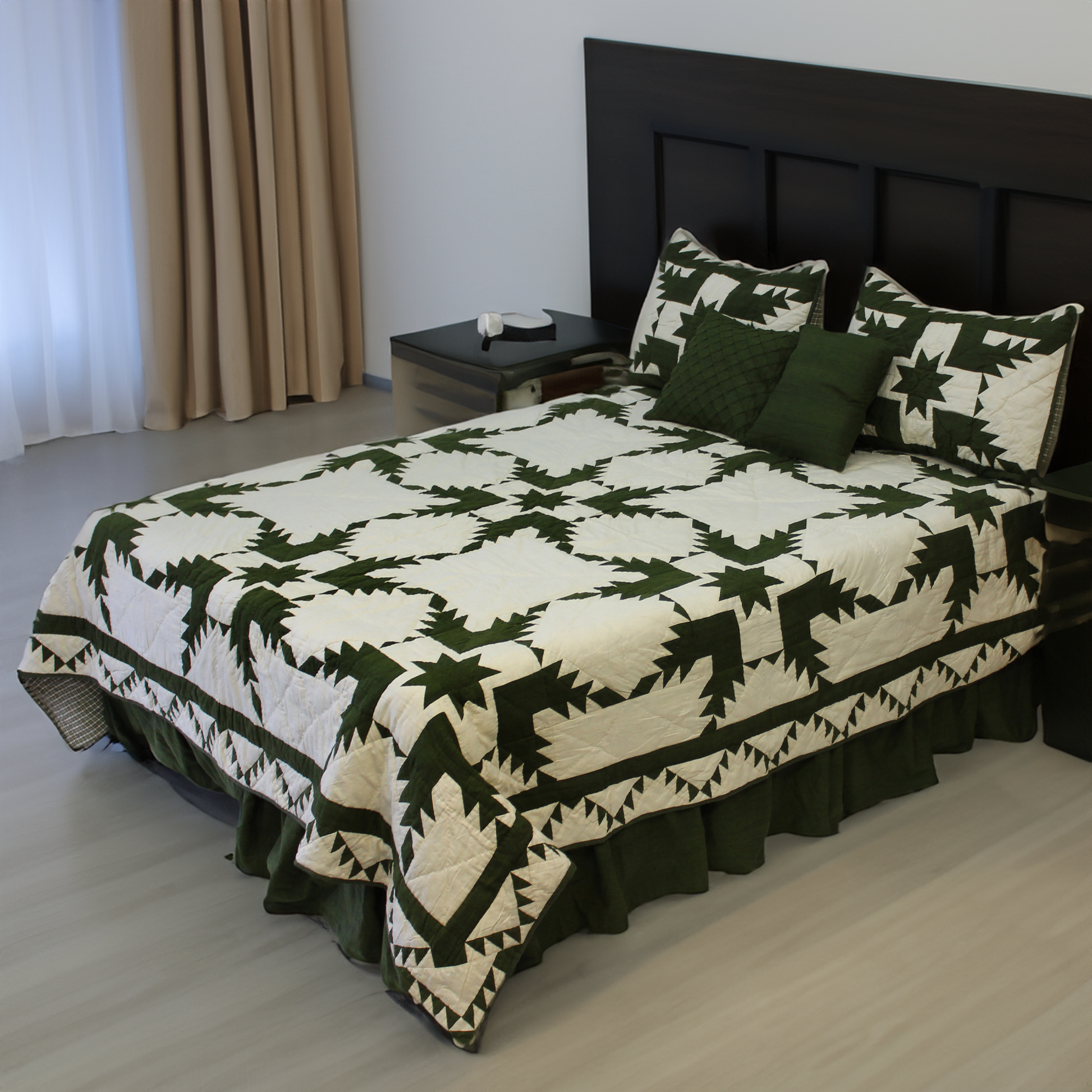 Emerald Feathered Star Quilt, Hand cut and Patchwork cotton fabric blocks.