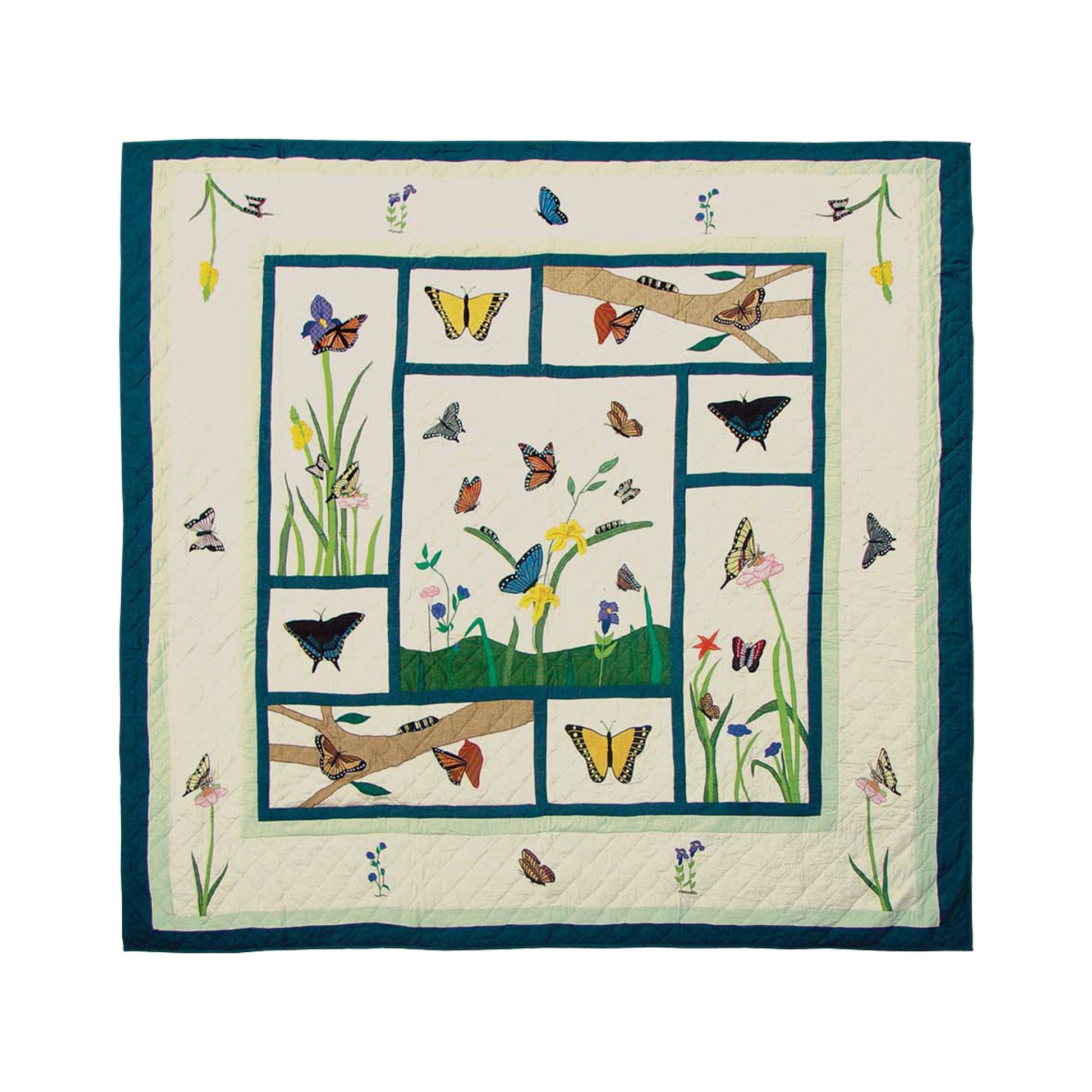 Flutterring Butterflies Quilt, Hand cut and Appliqued cotton fabric motifs.