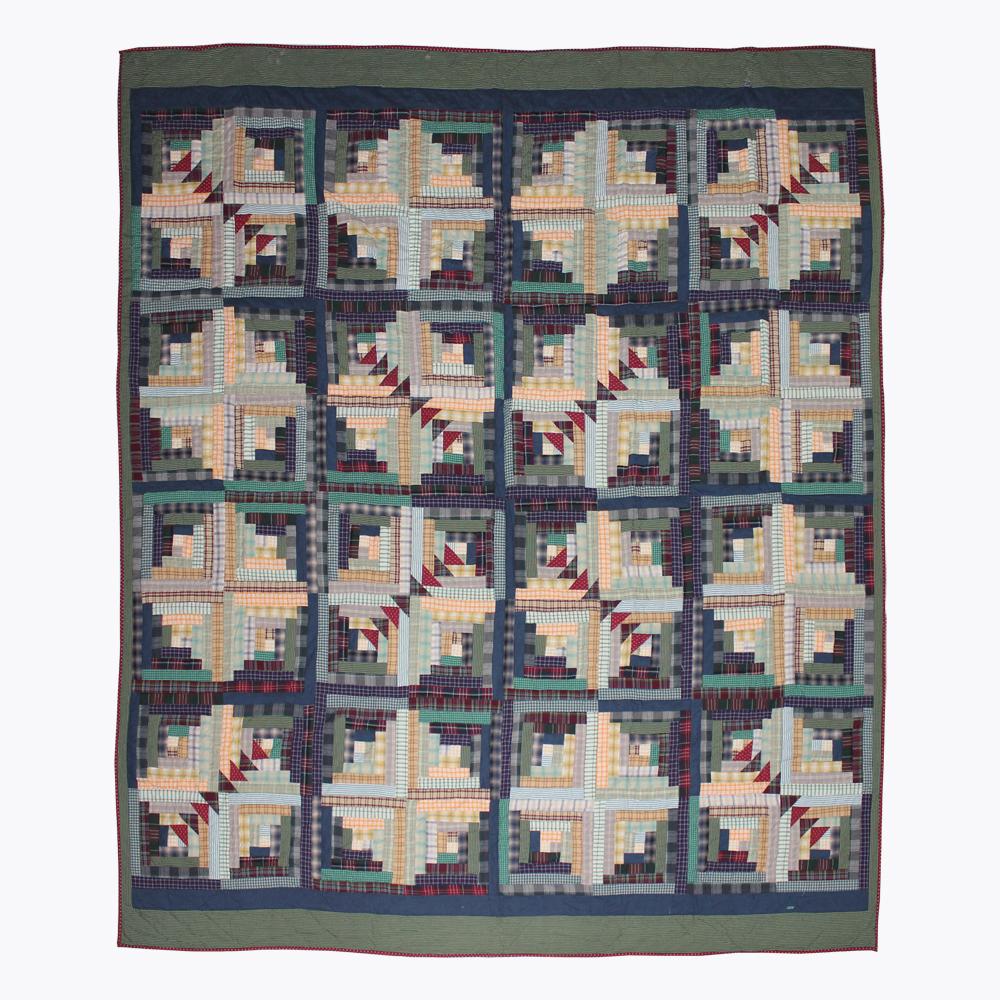 This quilt has a light, cool, and breezy vibe thanks to the use of a wide assortment of patches in a gorgeous log cabin pattern. Small cold patches are followed by a big diamond mosaic type spread of maroon flying geese triangles and log cabin stripes in warmer soft yellows. The fluffed hand-layered organic cotton fill and soft cotton fabric shell are extraordinarily soft, warm, comfortable, and cool. Our quilts are hand appliquéd using real appliqué parts and are not printed. It is hand-quilted rather than machine-quilted. We provide 100% original traditional quilting. The quilt's reverse is composed of homespun cloth, while the backing is made of yarn-dyed fabric.