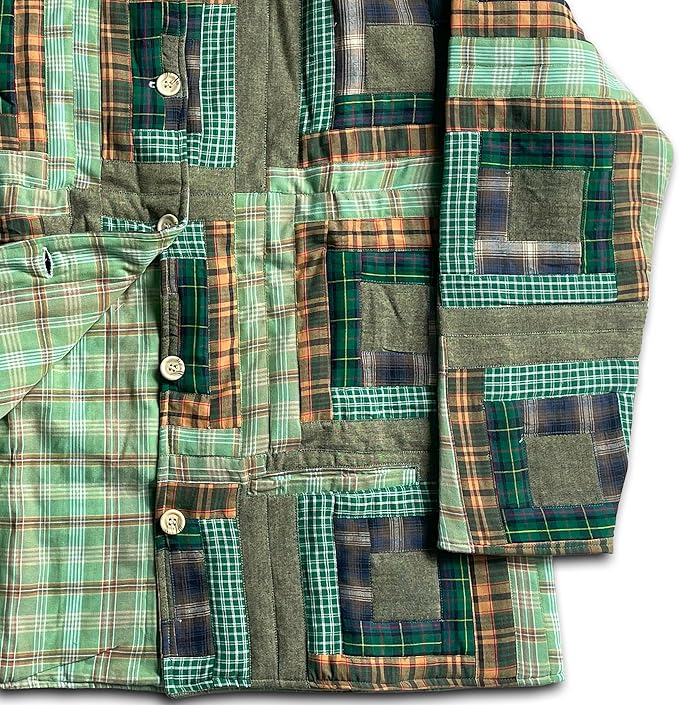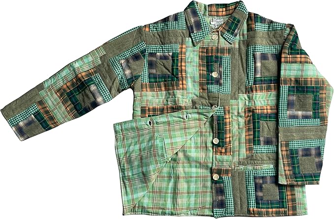 Elevate your wardrobe with the Green Log Cabin Quilted Cotton Jacket, a perfect blend of traditional craftsmanship and contemporary style. This jacket features a log cabin-inspired design, skillfully crafted with machine quilting for a refined, durable finish. Filled with soft cotton, it provides ultimate comfort and warmth, making it suitable for all seasons. The reversible feature offers two distinct looks in one, making it perfect for both casual outings and partywear. Designed with a regular fit, it flatters a variety of body types, ensuring versatility in your styling. Easy to maintain and built for longevity, this jacket is a must-have for any fashion-forward wardrobe.