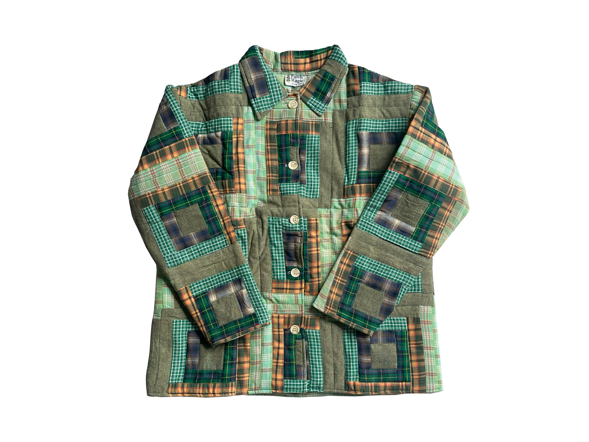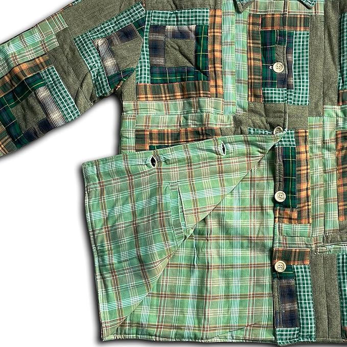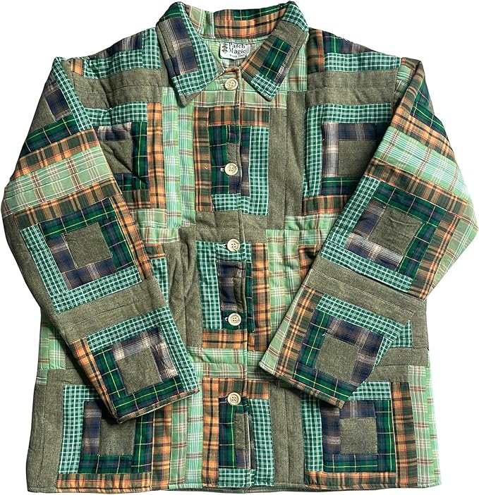 Green Log Cabin Quilted Cotton Jacket – Log Cabin-Inspired Design, Reversible, Regular Fit, Soft Cotton Filled, Stylish Jacket for Parties and Casual Wear