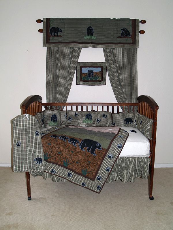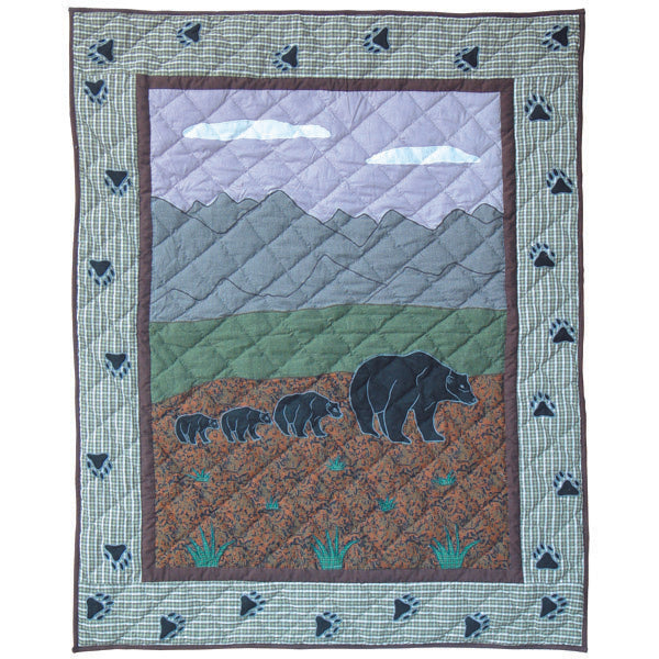 Celebrate the beauty of North America's most majestic creature with the Bear Country Crib Set. This handcrafted appliqué original features bear tracks, playful bear cubs, and an outdoor wilderness theme, bordered by soothing pale white tones. Perfect for creating a serene and cozy nursery, this set ensures comfort and safety for your baby.