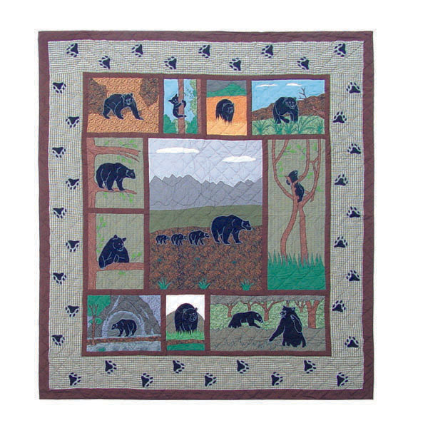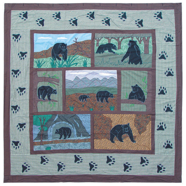 Poetry of bears Quilt, Hand cut and Appliqued cotton fabric motifs.