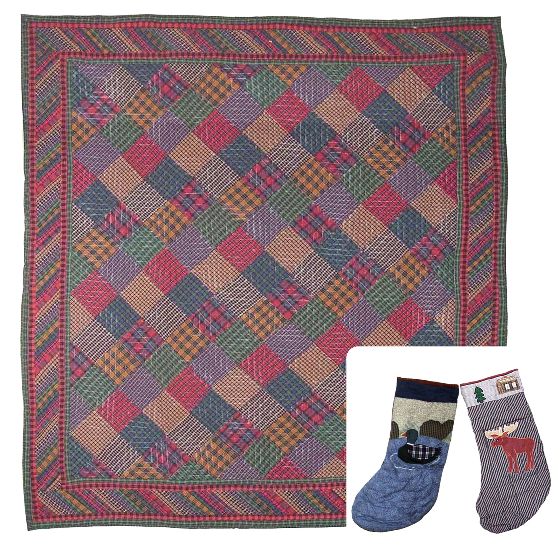 Tartan Log Cabin Twin Quilt 65"W x 85"L | Buy a Twin-Size Quilt and Get a Free Set of Stockings!