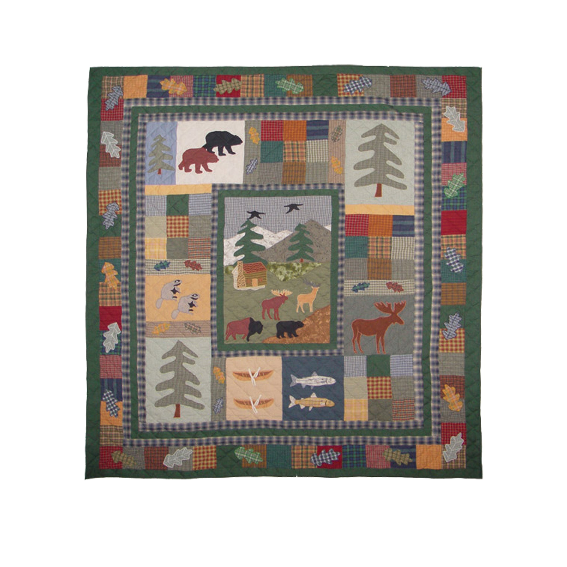 Up North Woods Quilt, Hand cut and Appliqued cotton fabric motifs.
