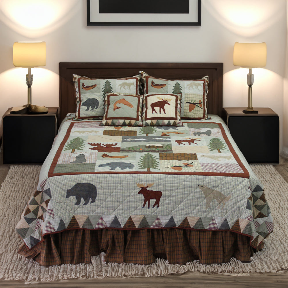 2 Pillow Shams + 2 Toss Pillows + 1 Queen Bed Skirt |