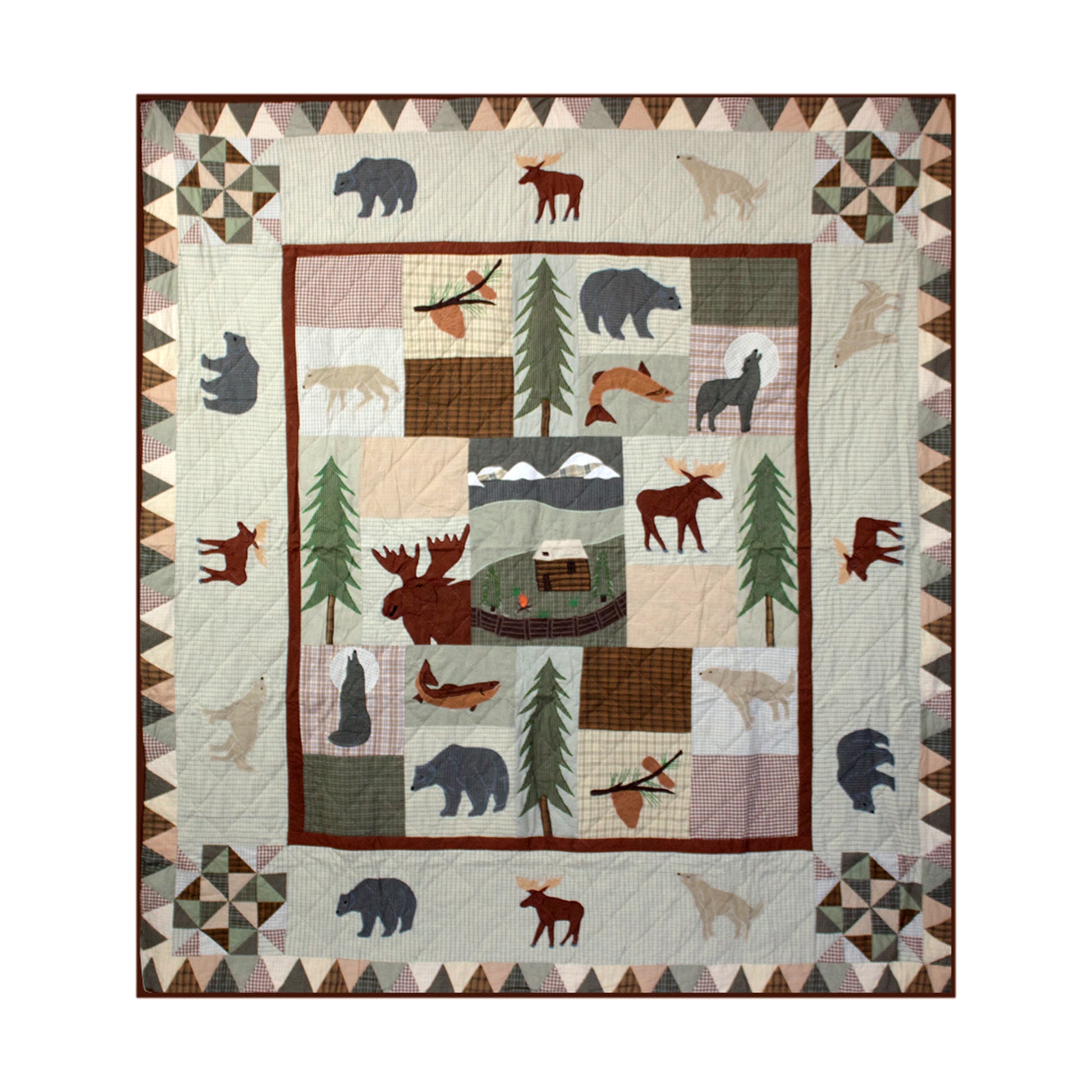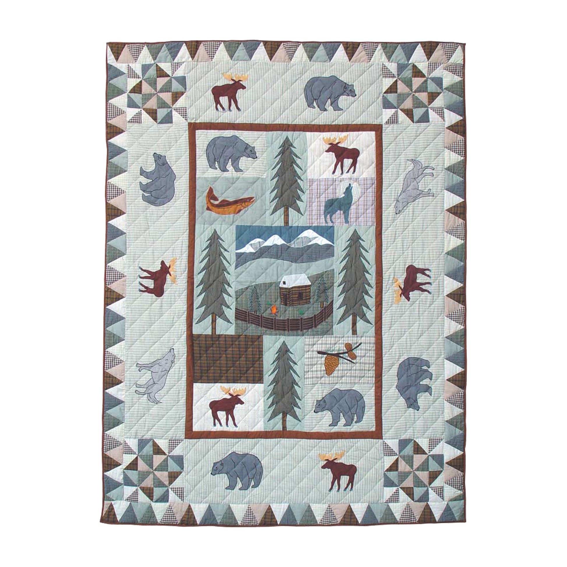 White Mountain Whispers Quilt, Hand cut and Appliqued cotton fabric motifs.