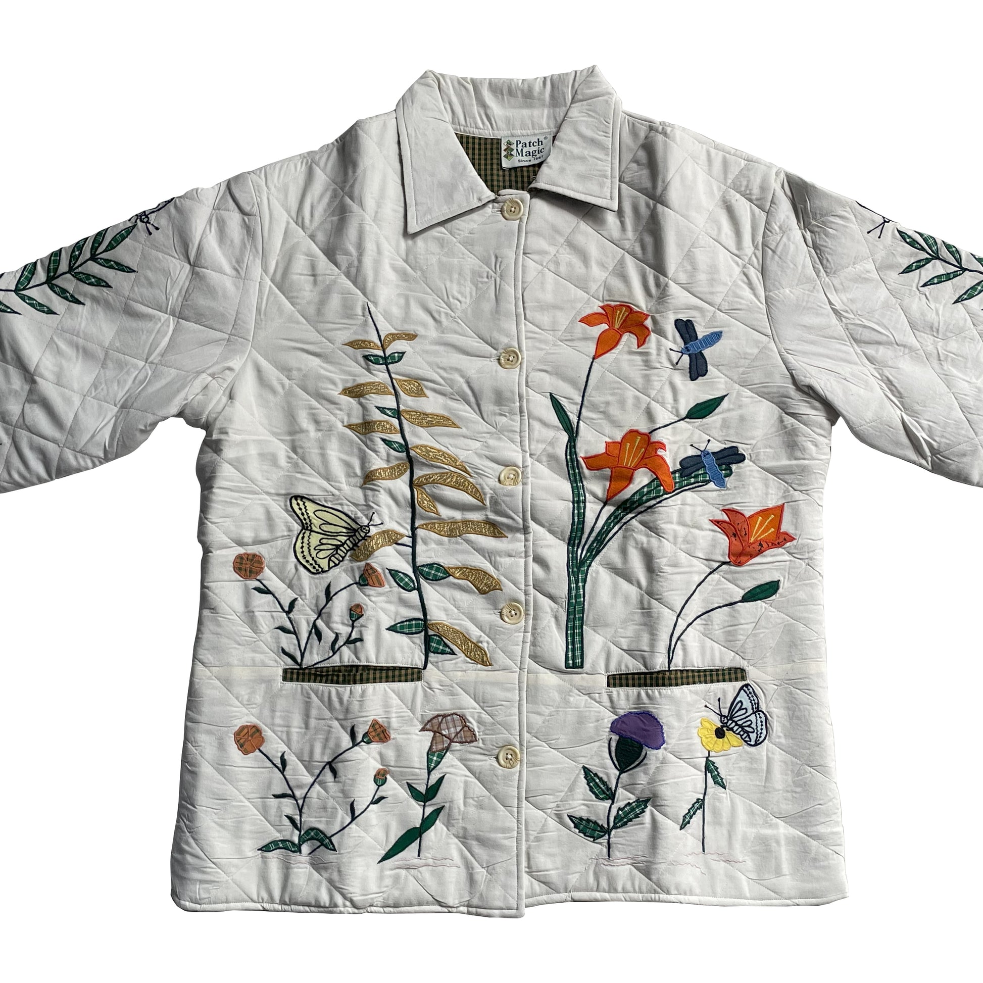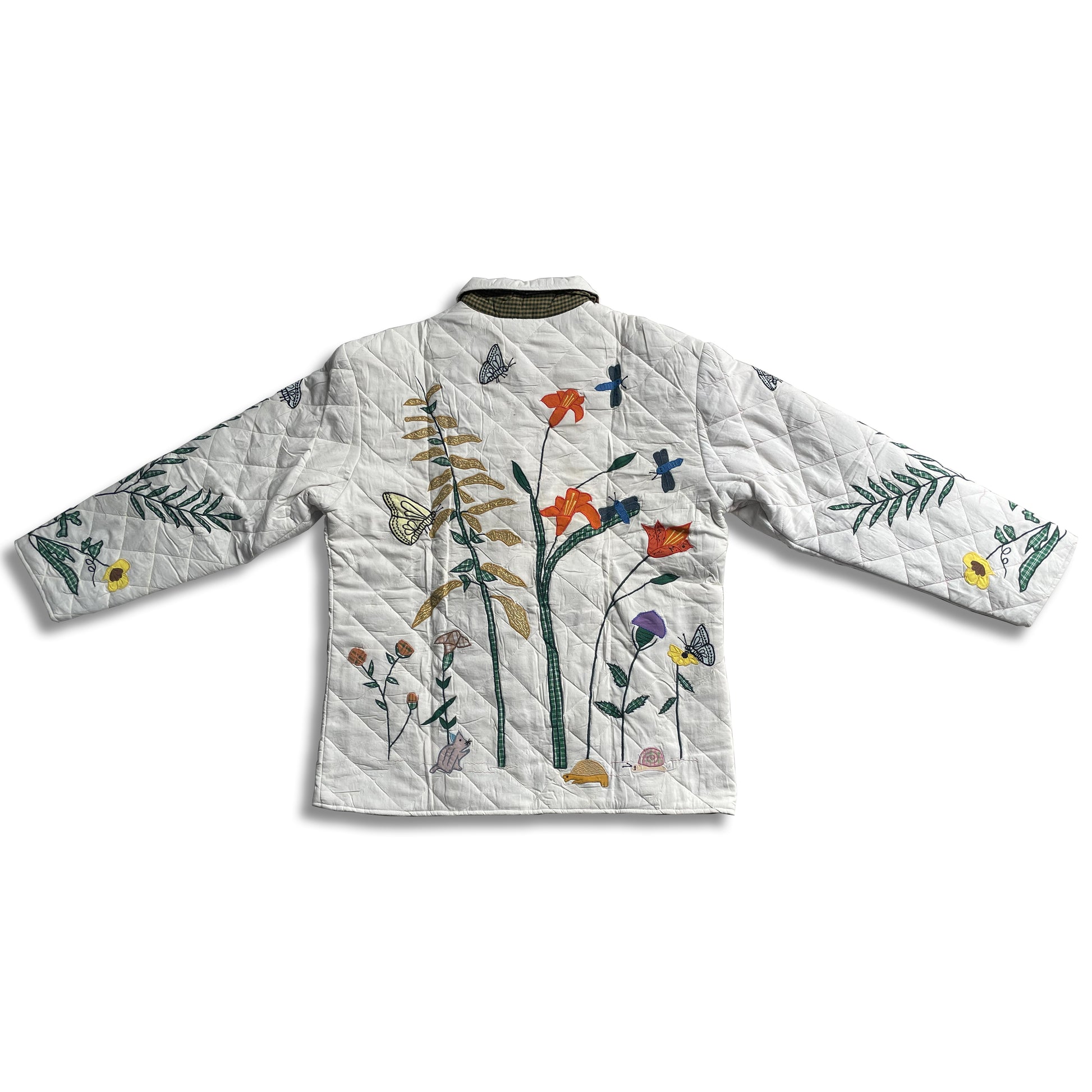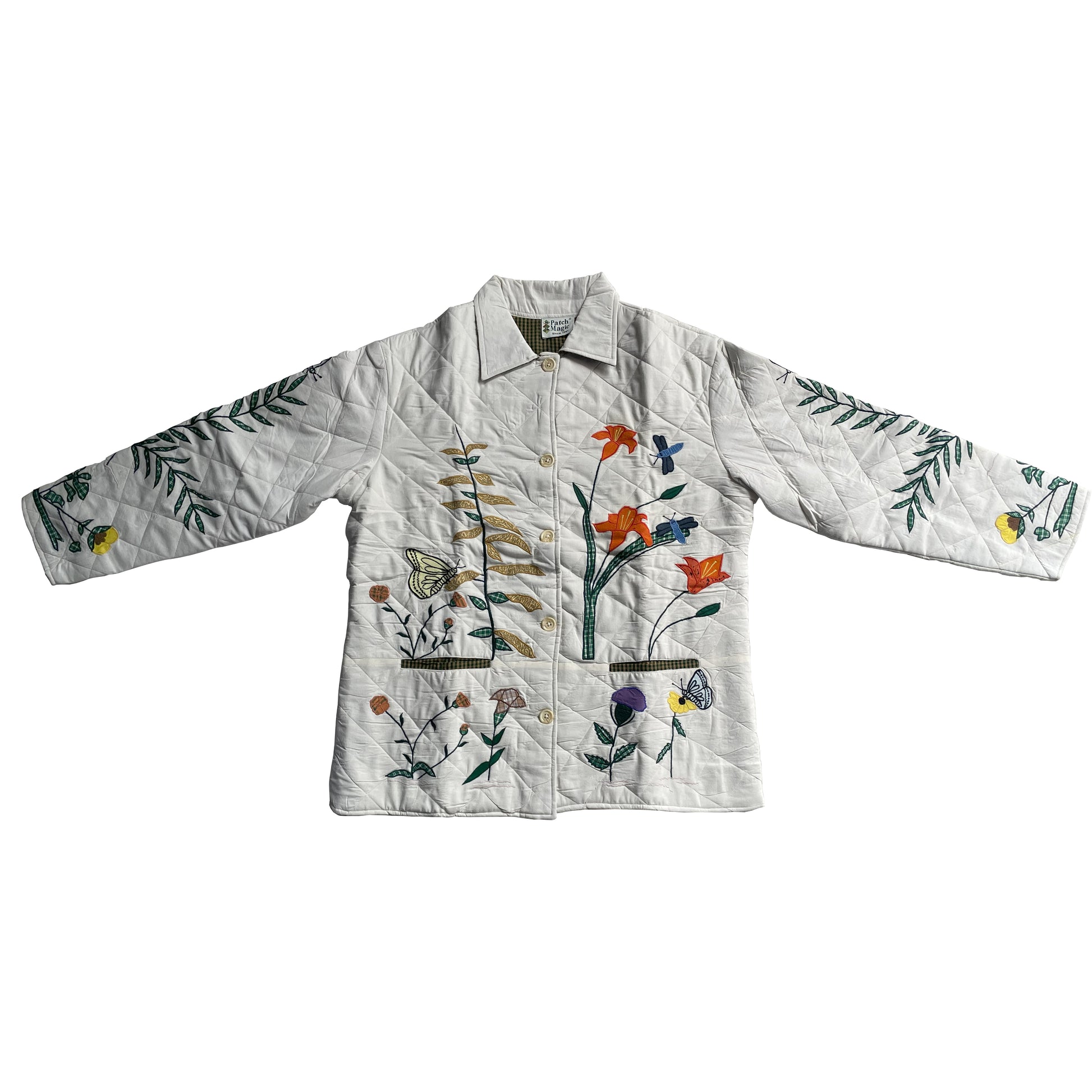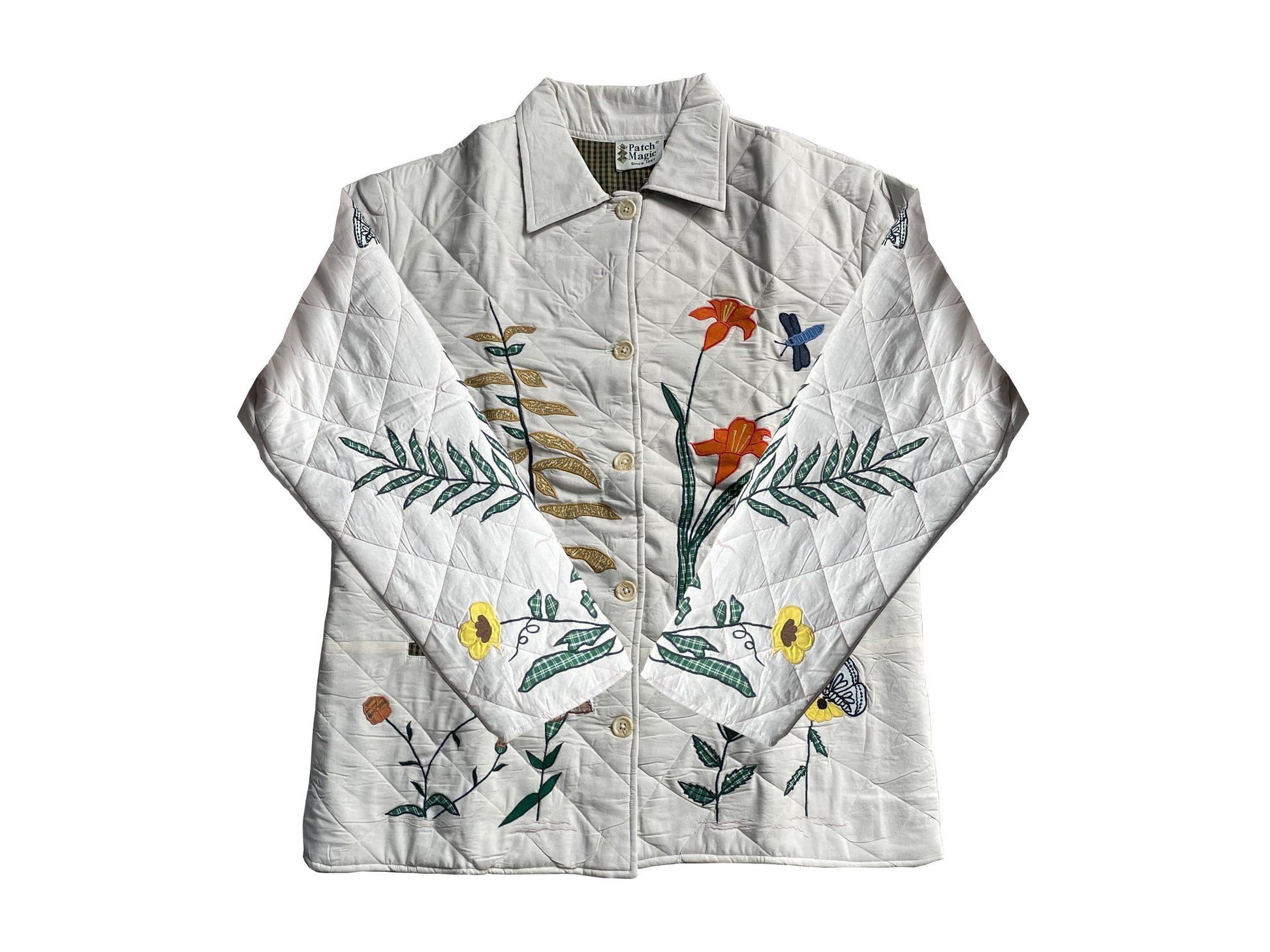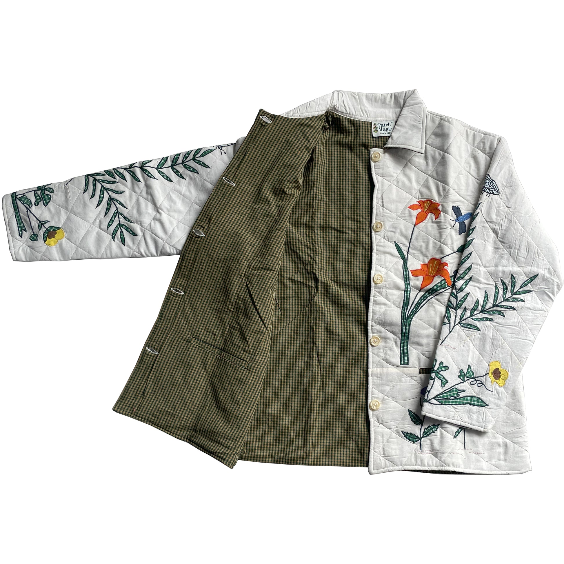 Celebrate the beauty of nature with the Wildflower Themed Quilted Cotton Jacket. Adorned with intricate wildflower-inspired stitched designs, this jacket brings a blend of elegance and natural charm to your wardrobe. Machine-quilted with precision and filled with soft cotton, it offers year-round warmth and comfort. The reversible design provides two unique styles in one, making it a versatile wardrobe essential. With a regular fit that flatters various body types, this jacket is perfect for casual outings, layering in cooler weather, or adding a nature-inspired touch to any ensemble.